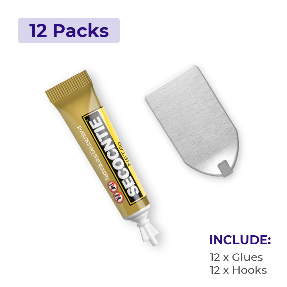 Forget about drilling and screwing, this hook is an easy and strong way to hang. It comes with a super glue that sticks on to almost all surfaces of your house and provides a strong lasting mounting.